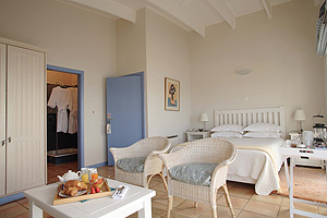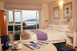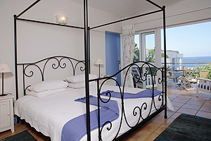 All the rooms are individually decorated in bright, happy colours which reflect the surrounding sea and mountains. Six of the seven rooms have private balconies where guests can enjoy the panoramic view from the Robberg Peninsula to the right and the Tsitsikamma Mountains to the left.
